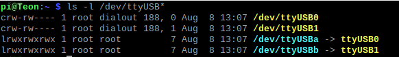 pi@Teon:~ $ dmesg | grep ttyUSB